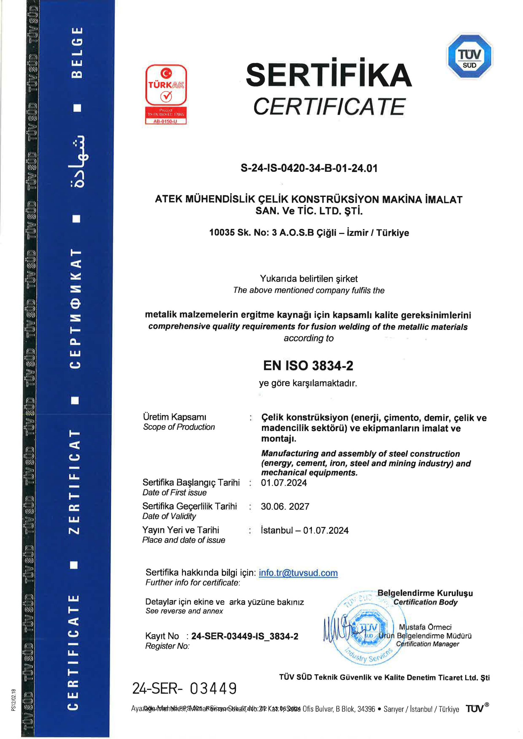 SERTİFİKALARIMIZ